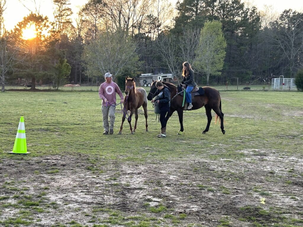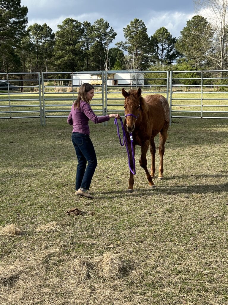 We’ve been working with him in the round pin to help desensitize and turn etc. he’ll also load by himself. Very funny story, we’d done everything we could to push pull coax etc. then finally he looks back at us and steps up into the trailer. He definitely has a funny demeanor. He loves walking with my wife and he likes to show off in front of the other horses. We also have an amazing young lady, Linley, who works with Forrest after she gets out of school.