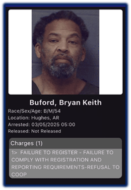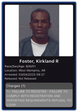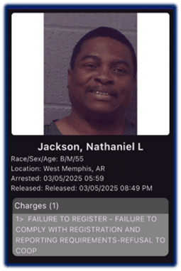 West Memphis, Arkansas: From March 4, 2025 to March 6, 2025, a large-scale, a multijurisdictional team of law enforcement agents conducted a Sex Offender Compliance Operation in Crittenden County, Arkansas. Agents with the Arkansas Division of Community Correction’s Sex Offender Services Unit led the Operation, which consisted of agents from multiple agencies: