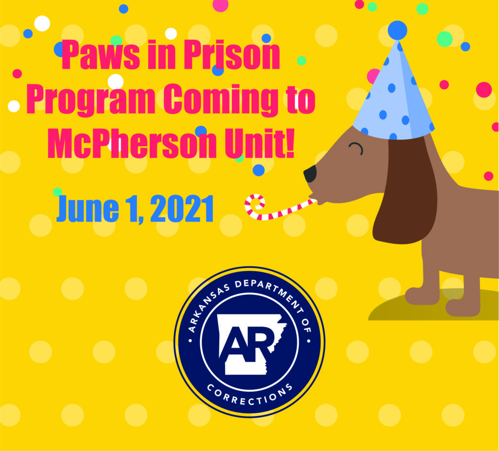 On May 26, the Department of Corrections announced that the McPherson Unit in Newport will be its seventh facility to host a Paws in Prison (PIP) program.